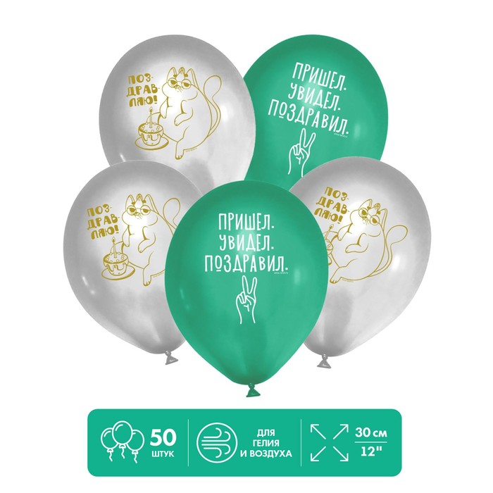 Воздушные шары латексные 12" «Пришел. Увидел. Поздравил», 50 шт.