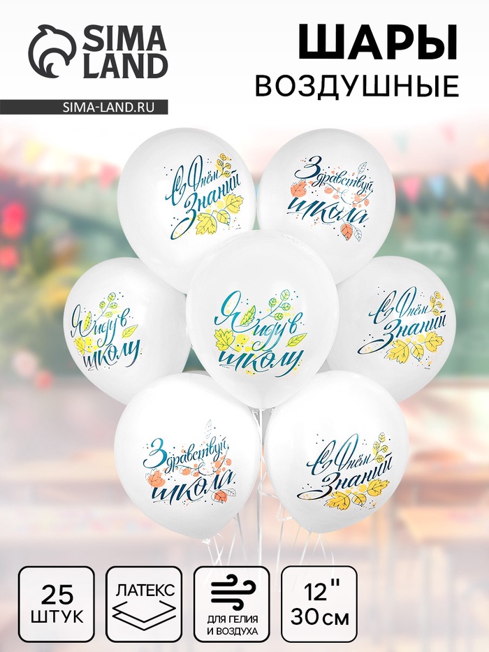 Воздушные шары латексные 12'' «С днём знаний», 25 шт.
