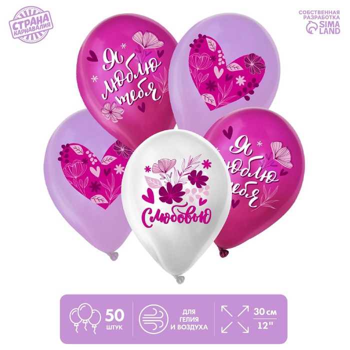 Воздушные шары латексные 12" «Я тебя люблю», 50 шт., МИКС