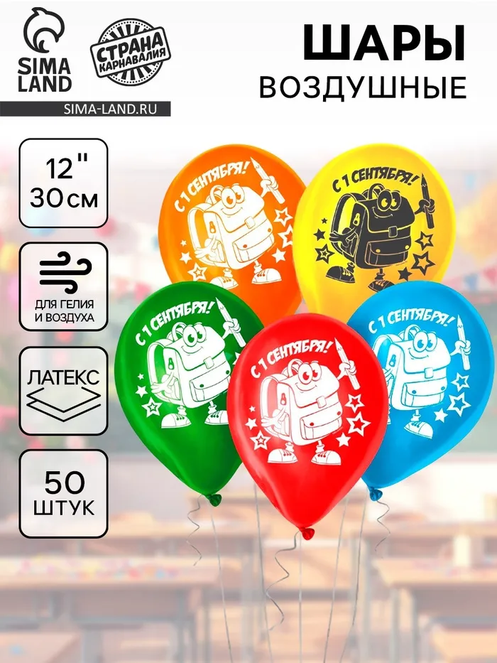Воздушные шары латексные 12" «С 1 сентября», 50 шт. — Характеристики