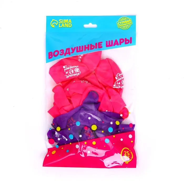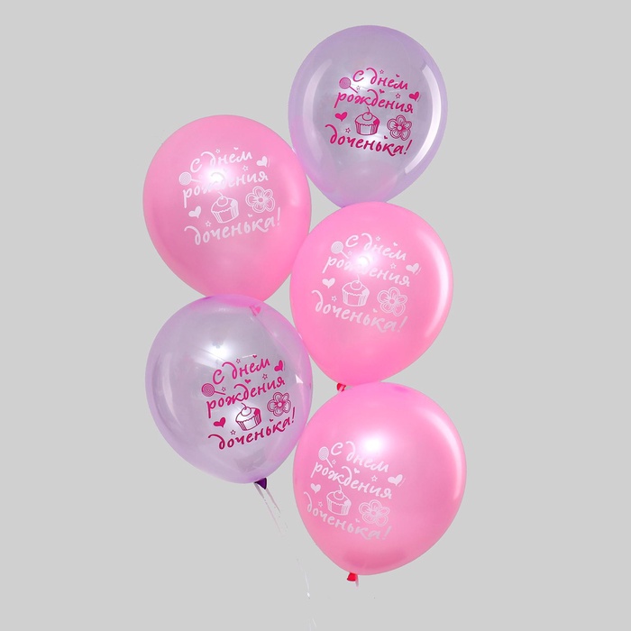 Воздушные шары латексные 12" «С днем рождения, доченька», 25 шт., кристалл — Характеристики