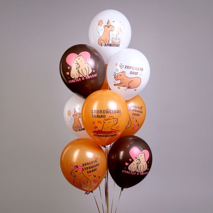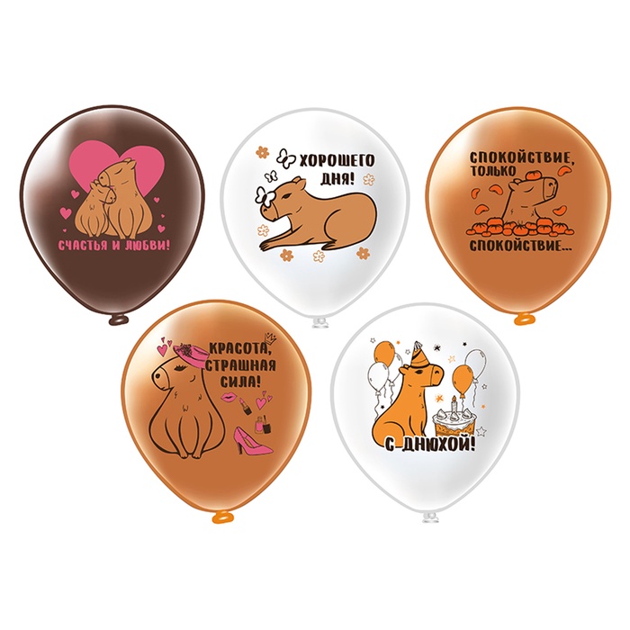Воздушные шары латексные 12" «С днем рождения! Капибара», 25 шт., МИКС — Характеристики