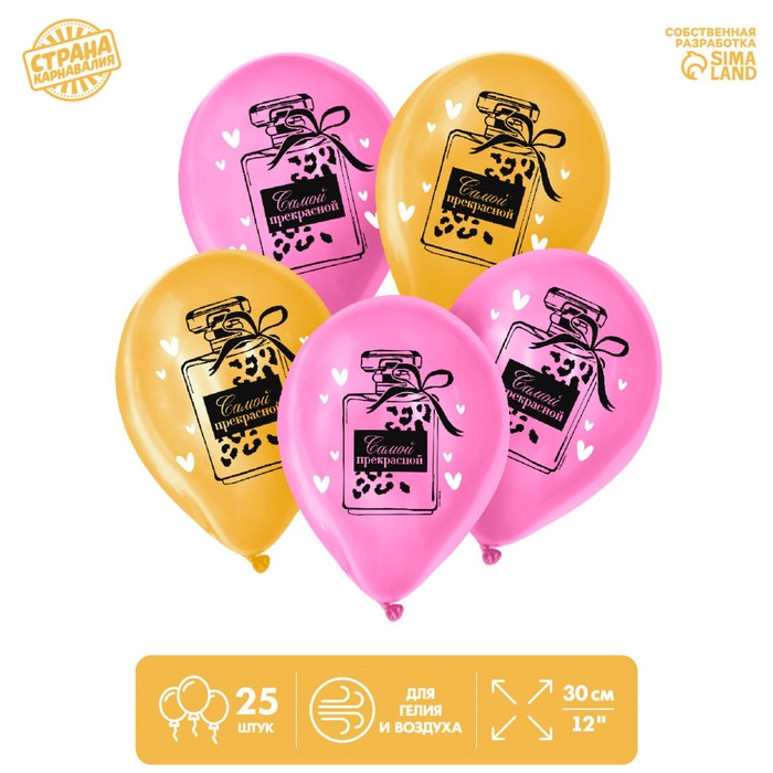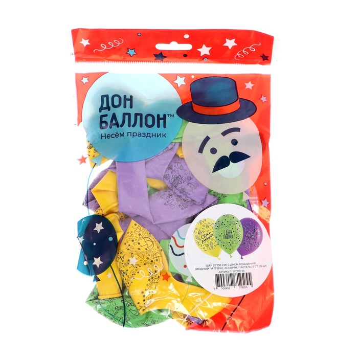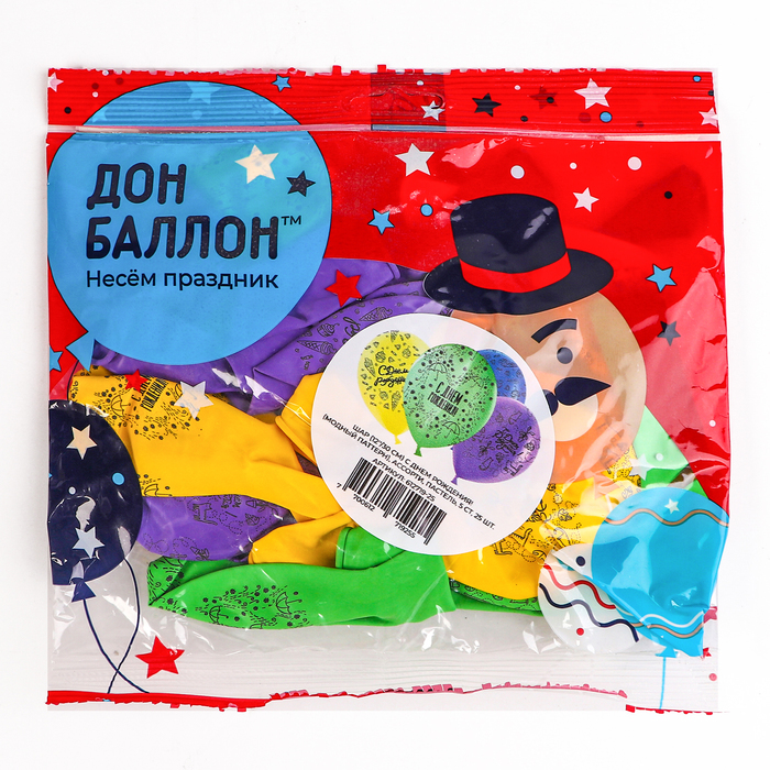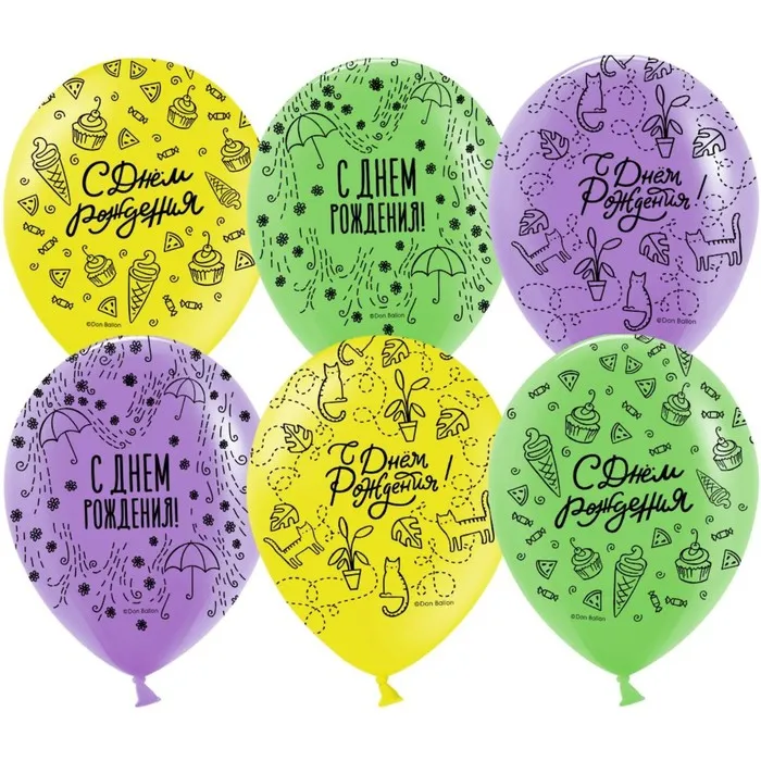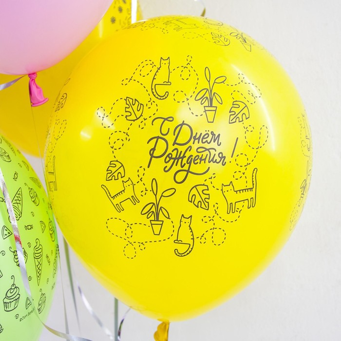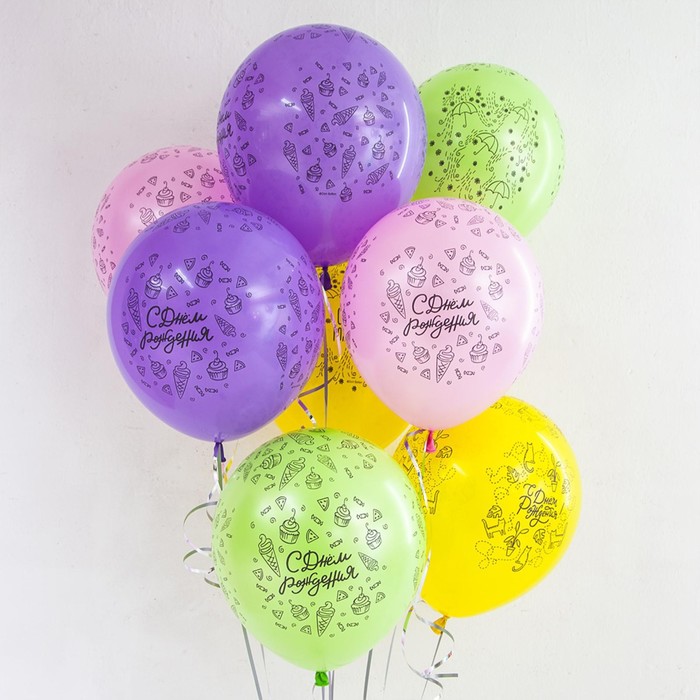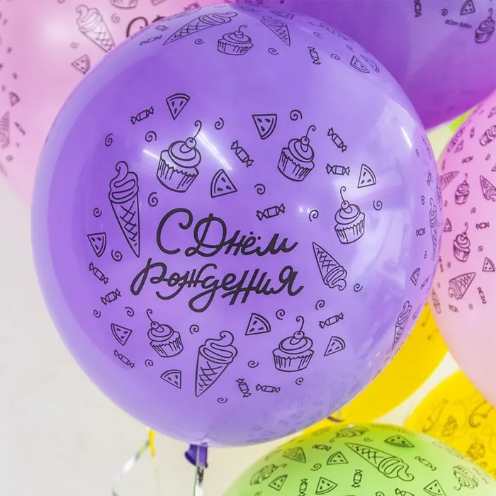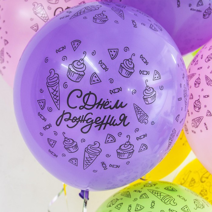 Воздушные шары латексные 12'' «С днём рождения!», 25 шт., 5-сторонний, МИКС — Характеристики