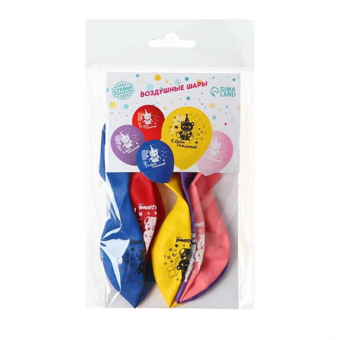 Воздушные шары латексные 12" «С днём рождения», 5 шт. — Характеристики