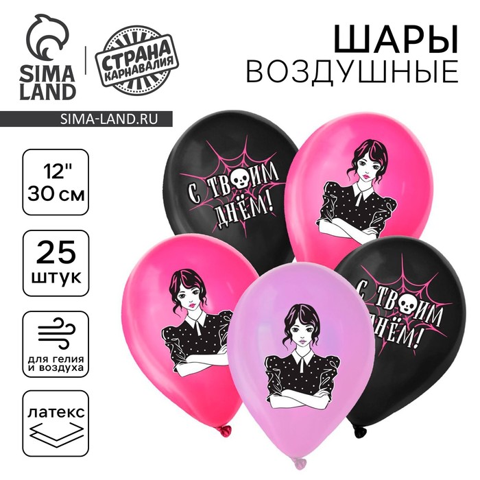 Воздушные шары латексные 12" «С Днём рождения!», 5 шт., МИКС — Характеристики