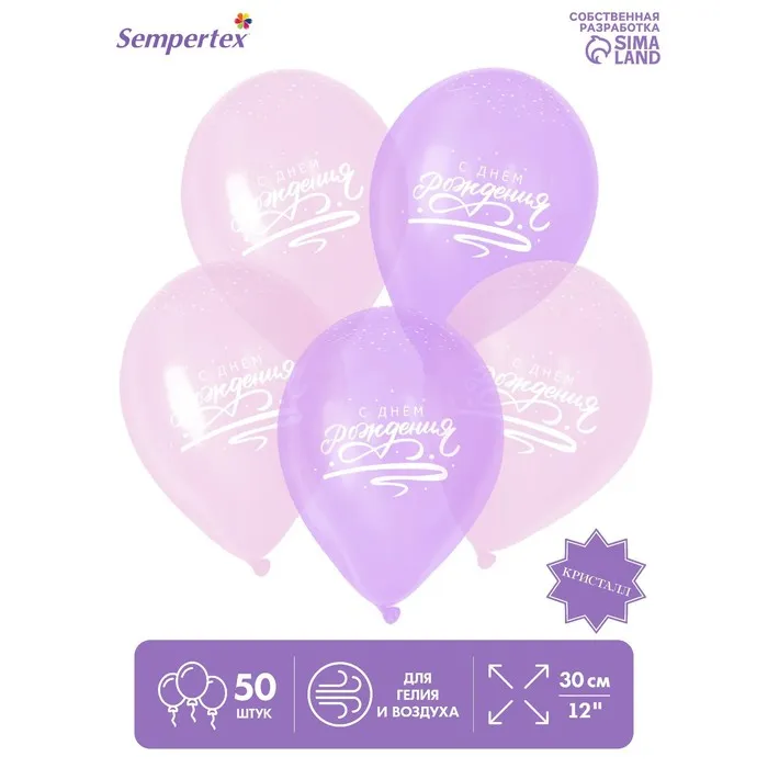 Воздушные шары латексные 12" «С Днём рождения», 50 шт., кристалл, МИКС — Характеристики