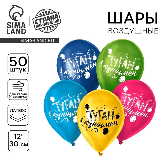 Воздушные шары латексные 12" «С днём рождения», 50 шт., kz — Характеристики