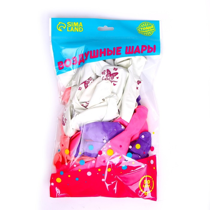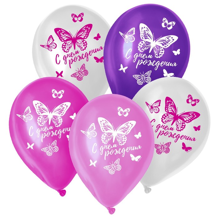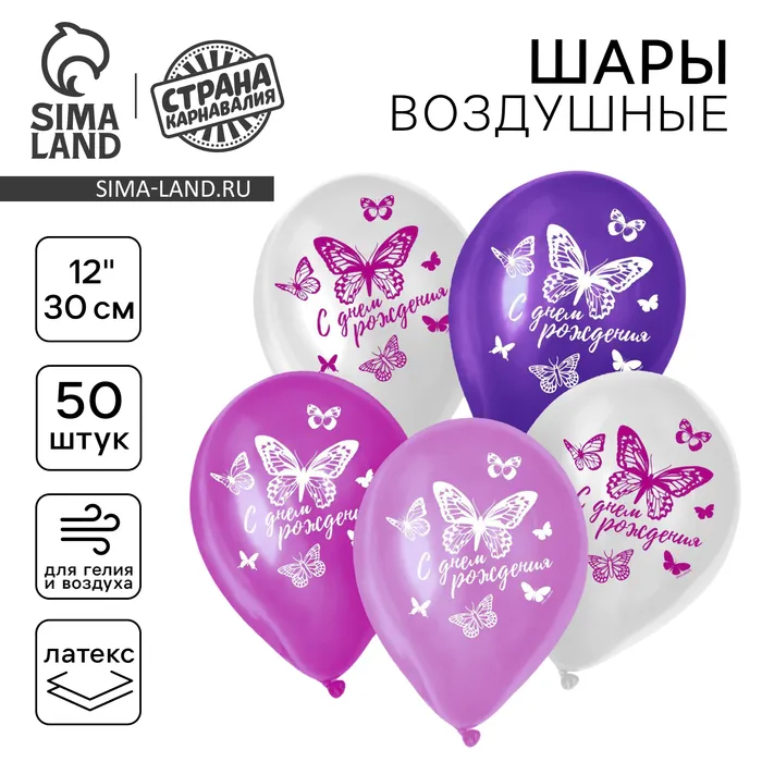 Воздушные шары латексные 12" «С днём рождения. Бабочка», 50 шт. — Характеристики
