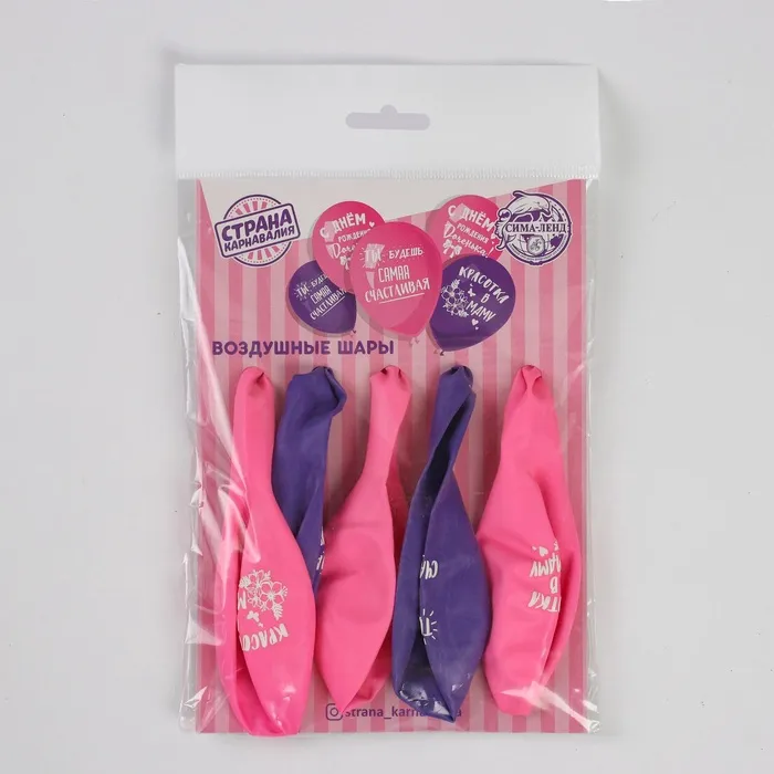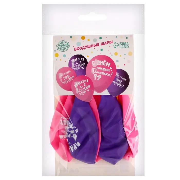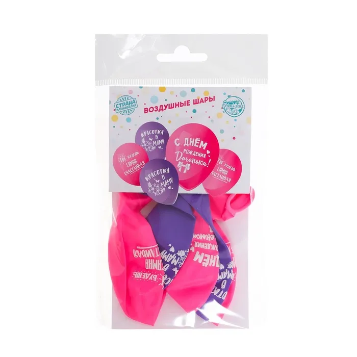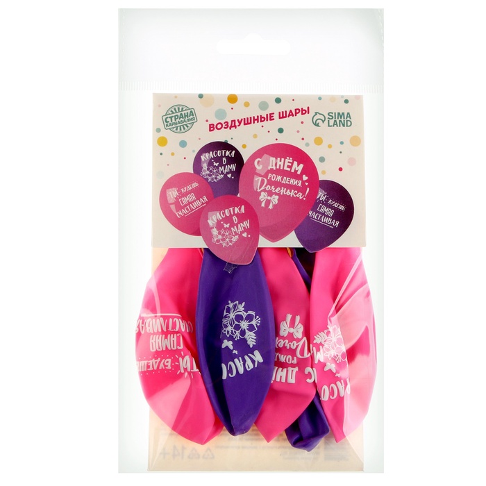 Воздушные шары латексные 12" «С днём рождения, доченька», 5 шт. — Характеристики