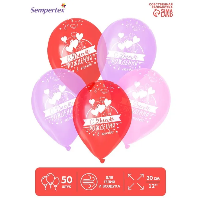 Воздушные шары латексные 12" «С Днём рождения, с любовью», 50 шт. — Характеристики
