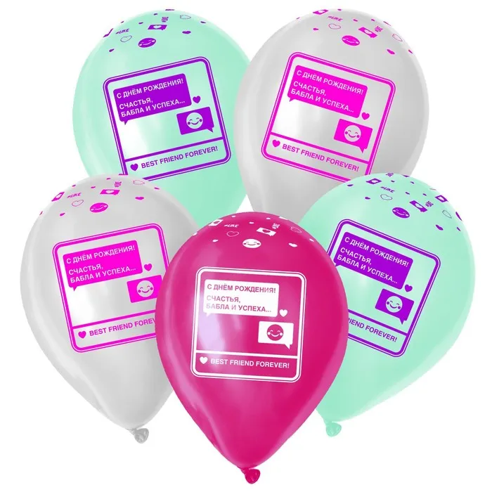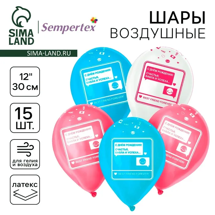 Воздушные шары латексные 12" «С Днём Рождения. СМС», 15 шт. — Характеристики