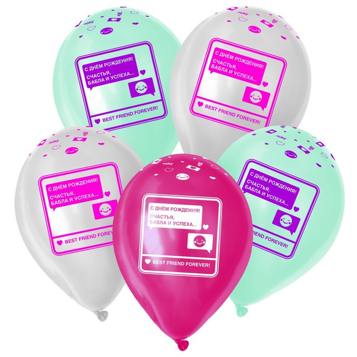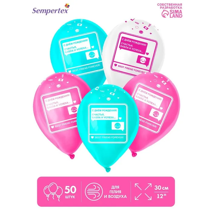 Воздушные шары латексные 12" «С Днём Рождения. СМС», 50 шт. — Характеристики