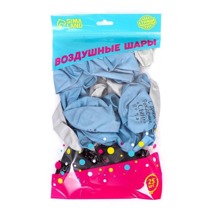 Воздушные шары латексные 12" «С днём рождения, сын», 25 шт., хром — Характеристики