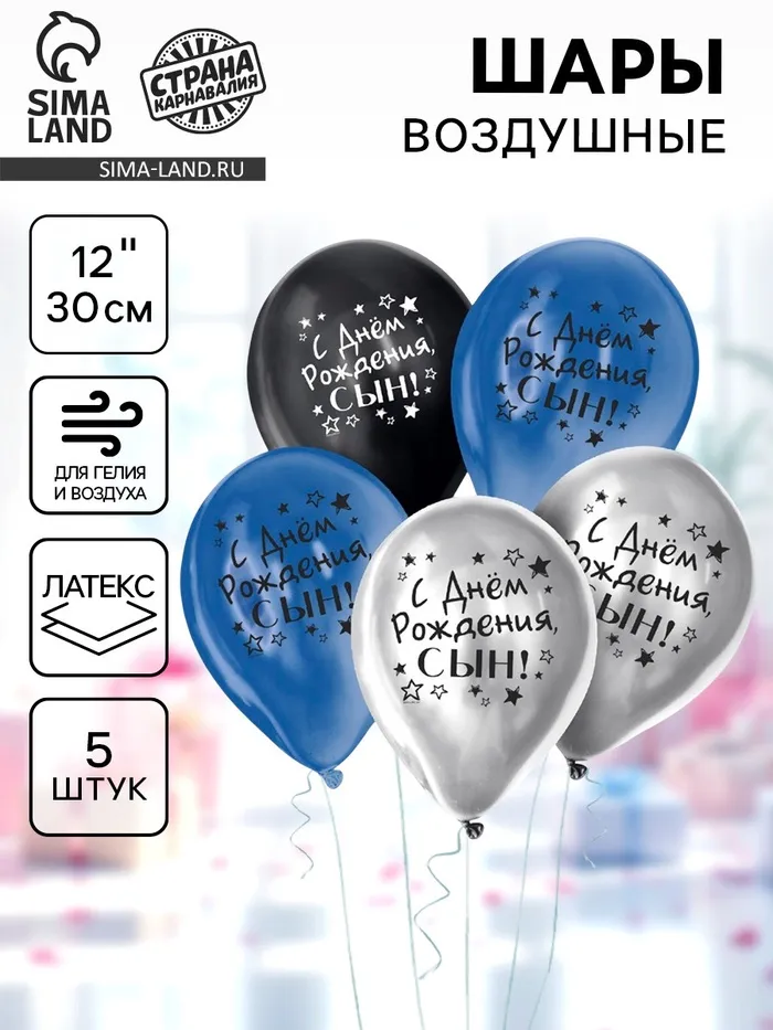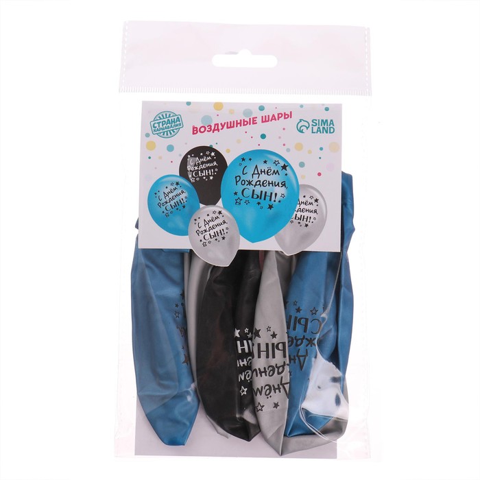 Воздушные шары латексные 12" «С днём рождения, сын», 5 шт., ХРОМ — Характеристики