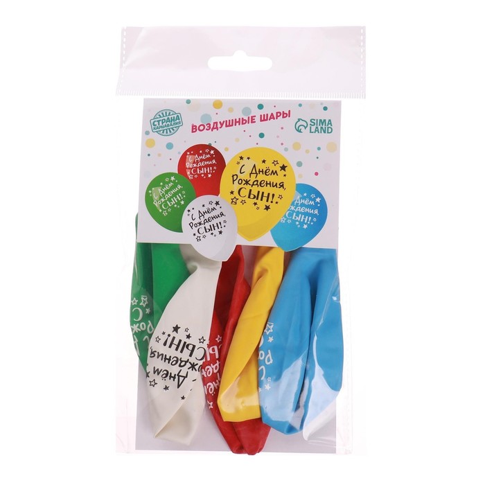 Воздушные шары латексные 12" «С днём рождения, сын», 5 шт. — Характеристики
