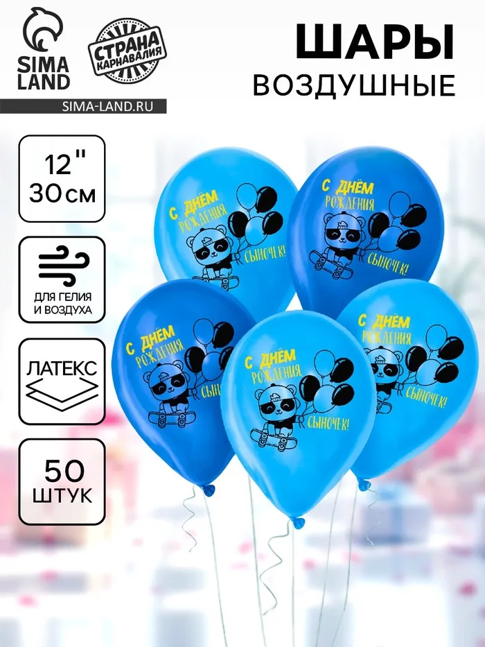 Воздушные шары латексные 12" «С Днём Рождения, сыночек», 50 шт. — Характеристики