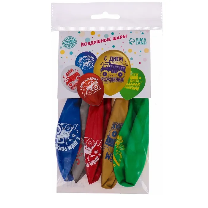 Воздушные шары латексные 12" «С Днём Рождения. Техника», 5 шт. — Характеристики