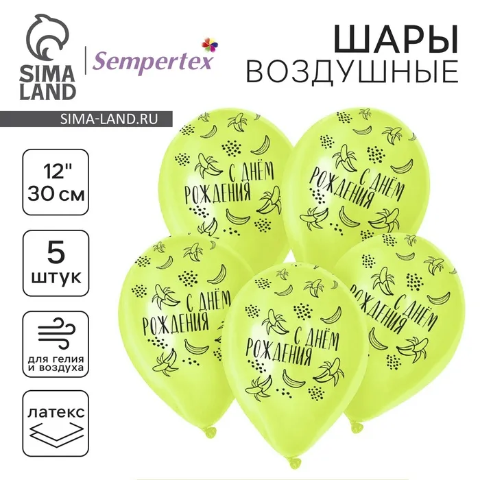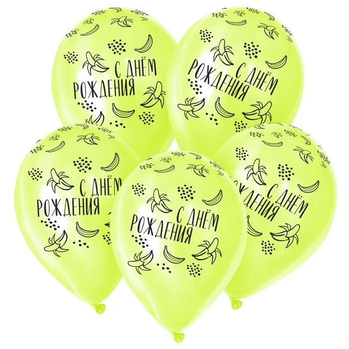 Воздушные шары латексные 12" «С Днём рождения. Весёлый банан», 5 шт. — Характеристики