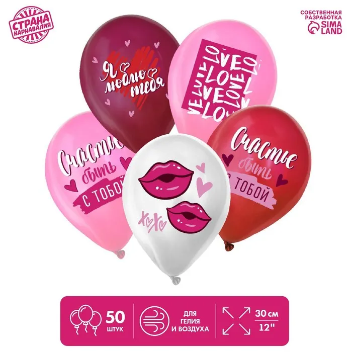 Воздушные шары латексные 12" «Счастье быть с тобой», 50 шт., МИКС — Характеристики