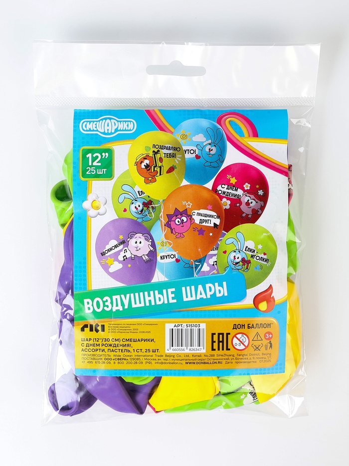 Воздушные шары латексные 12" «Смешарики, с Днем Рождения!», 25 шт. — Характеристики