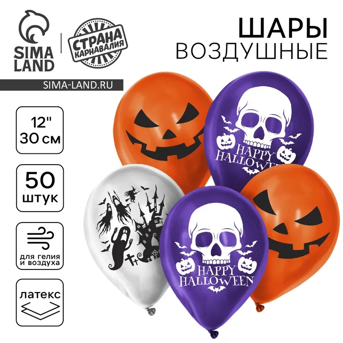 Воздушные шары латексные 12" «Страшилки, 50 шт., МИКС — Характеристики