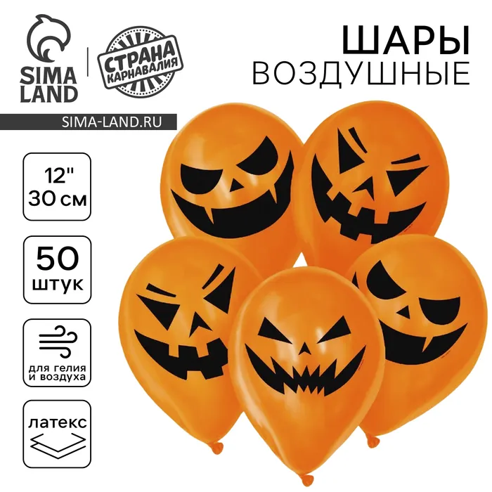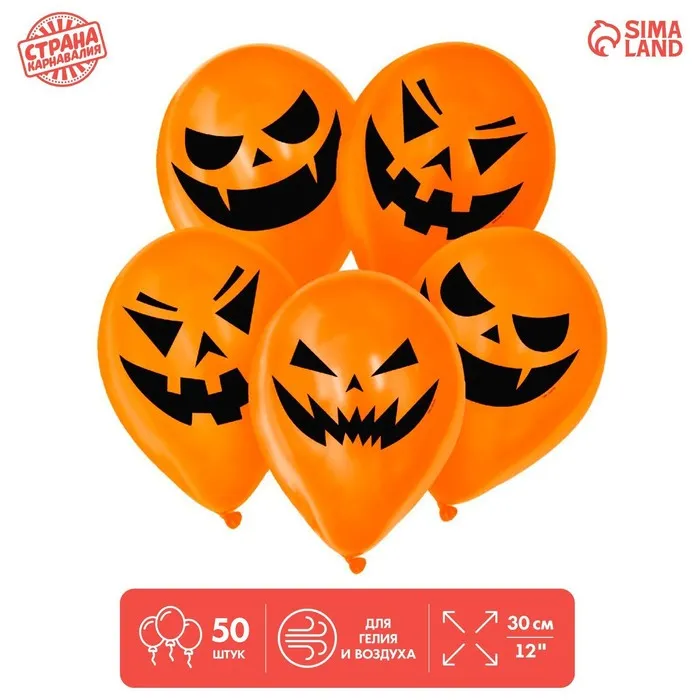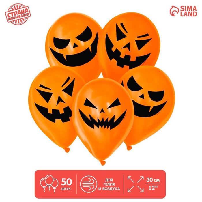 Воздушные шары латексные 12" «Страшные тыквы», 50 шт., МИКС — Характеристики
