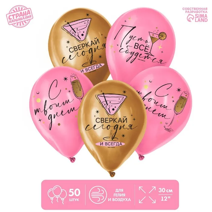Воздушные шары латексные 12" «Сверкай», 50 шт. — Характеристики