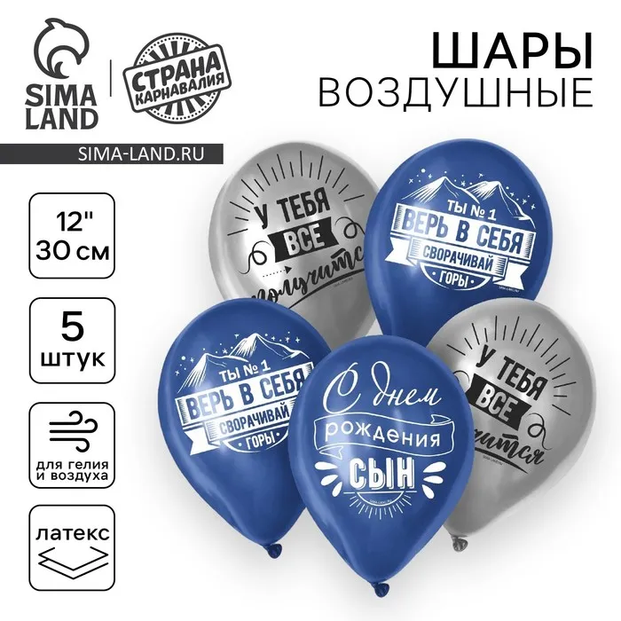 Воздушные шары латексные 12" «Сворачивай горы, сын», 5 шт. — Характеристики