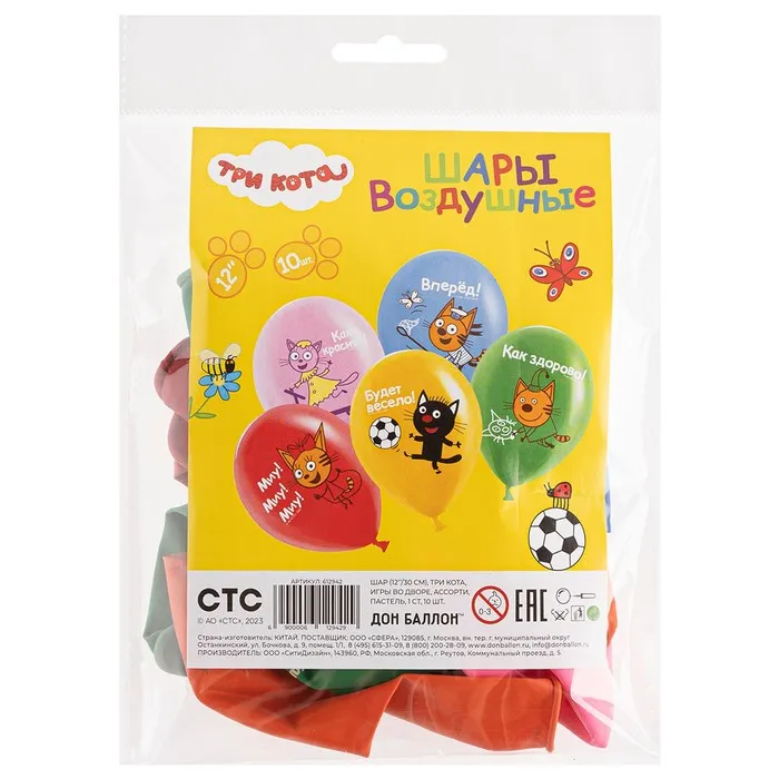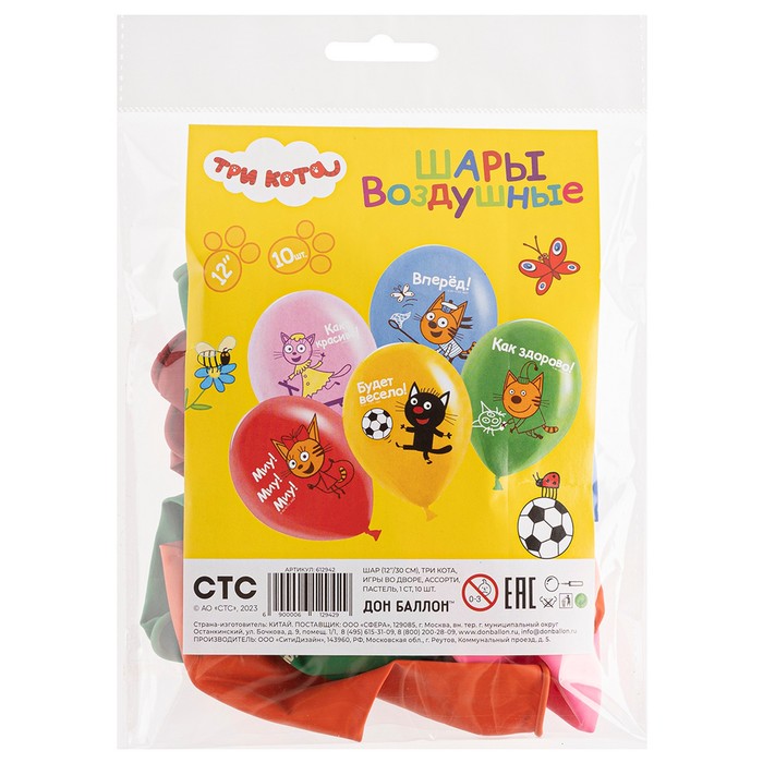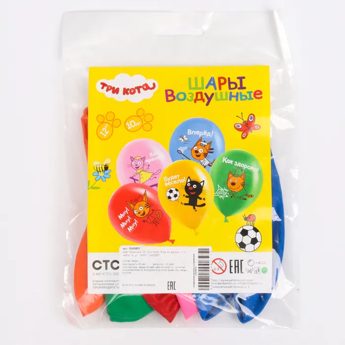 Воздушные шары латексные 12" «Три Кота», 10 шт., МИКС — Характеристики