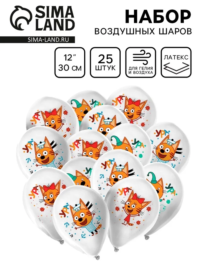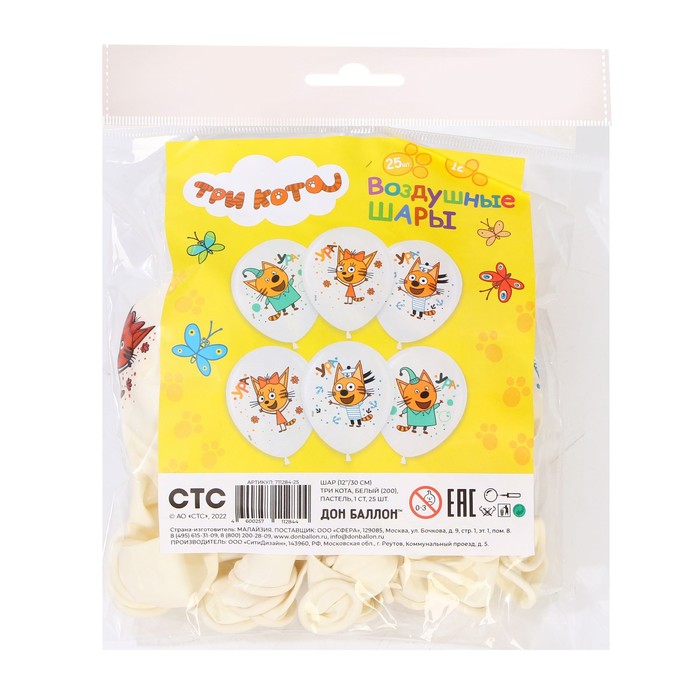 Воздушные шары латексные 12" «Три Кота», 25 шт., пастель, МИКС — Характеристики