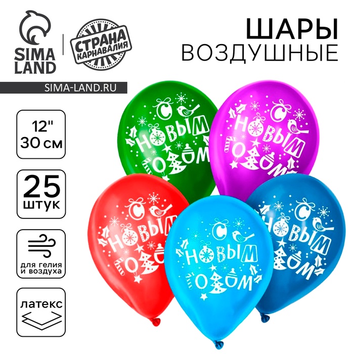 Воздушный шар латексный 12" «С Новым годом!», 25 шт, МИКС