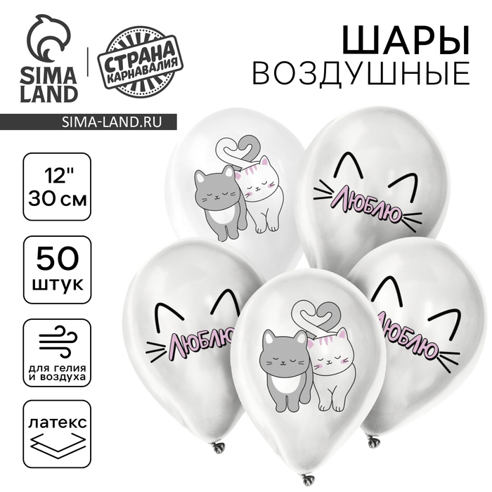 Воздушные шары латексные 12" «Люблю», 50 шт.