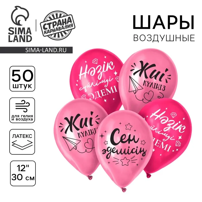 Воздушные шары латексные 12" «Ты прекрасна», 50 шт., kz — Характеристики