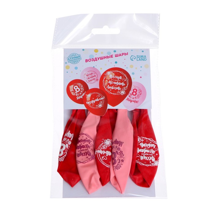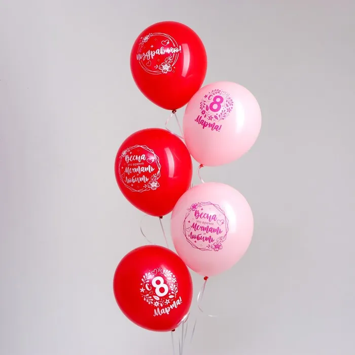 Воздушные шары латексные 12" «Весенний день, 8 марта», 5 шт. — Характеристики