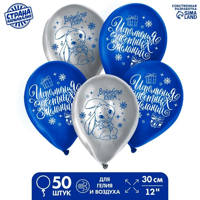 Воздушные шары латексные 12" «Волшебный зайка», 50 шт. — Характеристики