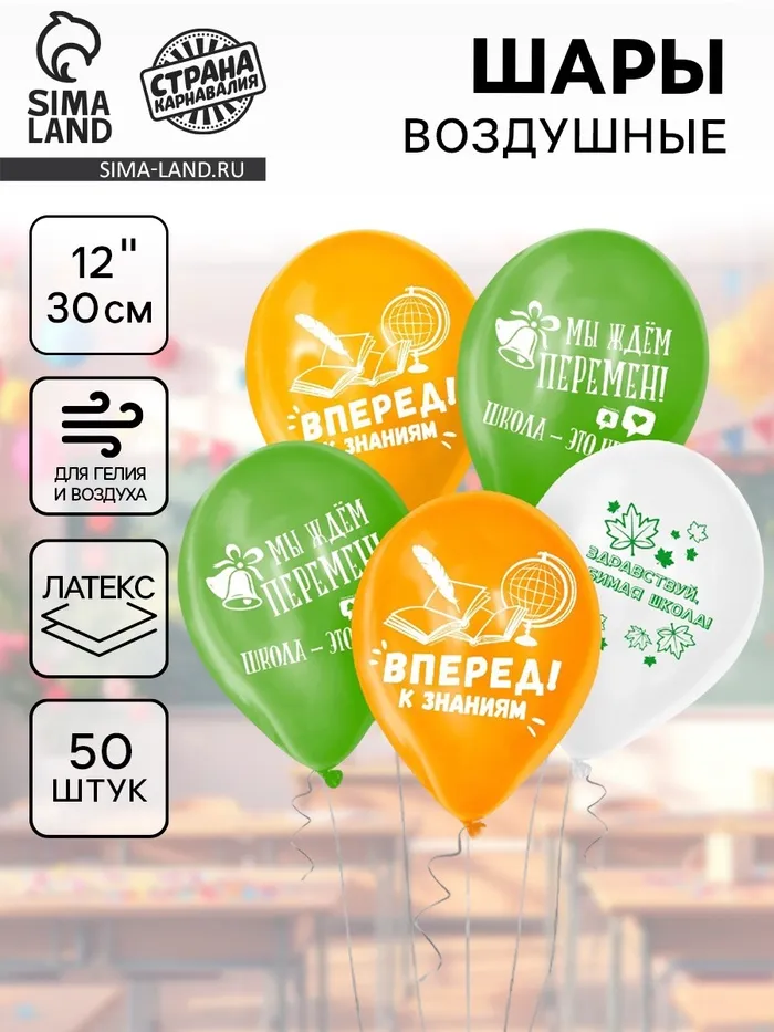 Воздушные шары латексные 12" «Вперед к знаниям», 50 шт. — Характеристики