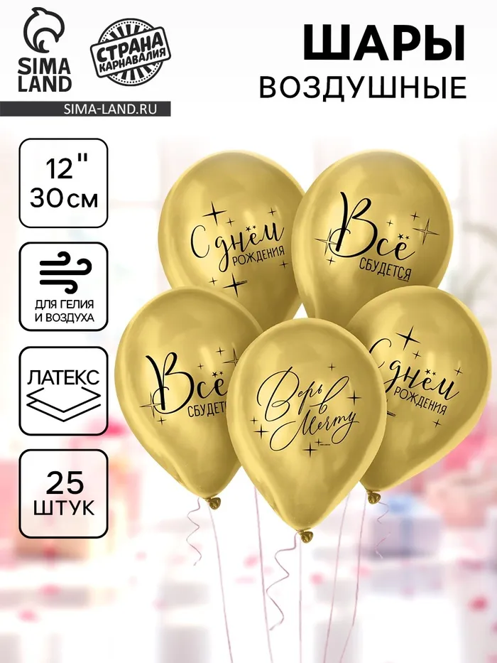 Воздушные шары латексные 12" «Всё сбудется», 25 шт. — Характеристики