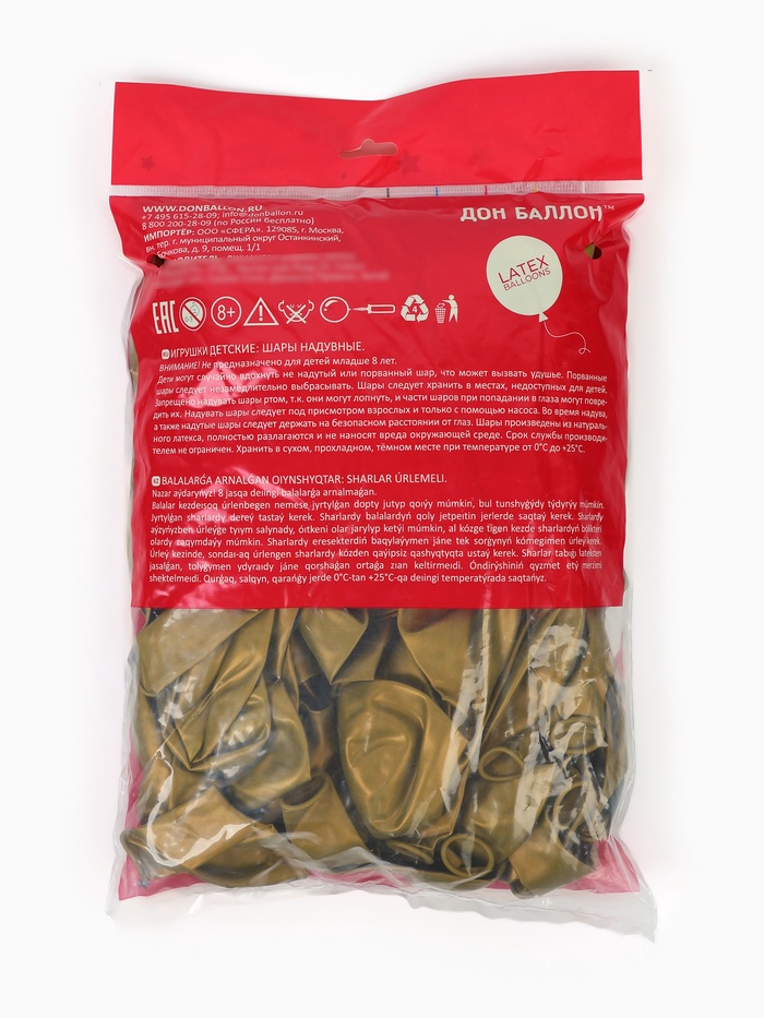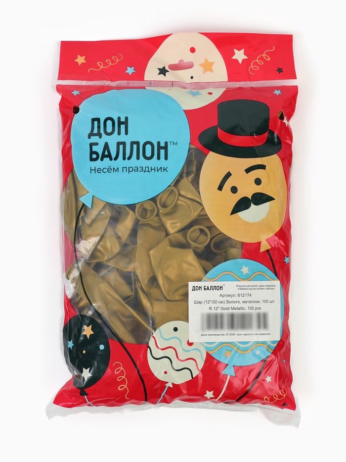 Воздушные шары латексные 12" «Золото», 100 шт. — Характеристики