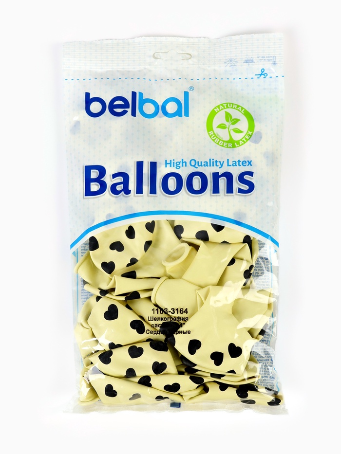 Воздушные шары латексные 14" «Черные сердца», 25 шт. — Характеристики