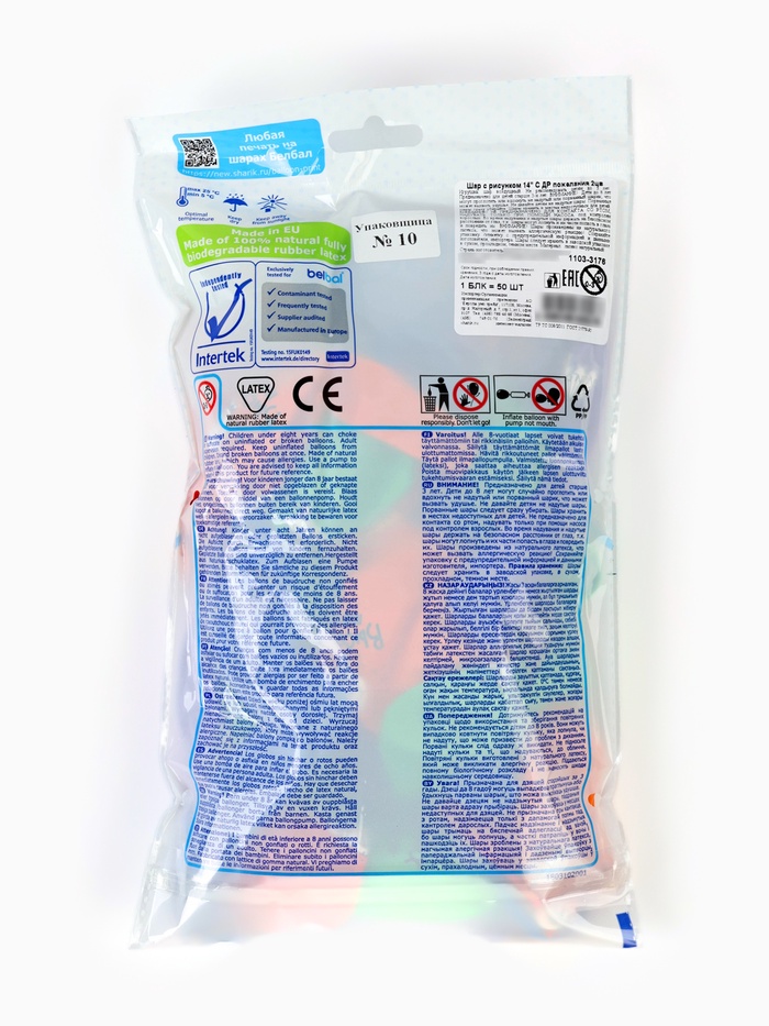 Воздушные шары латексные 14" «С ДР пожелания», 50 шт. — Характеристики