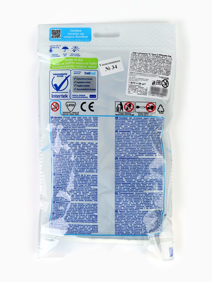 Воздушные шары латексные 14" «С юбилеем», 25 шт. — Характеристики