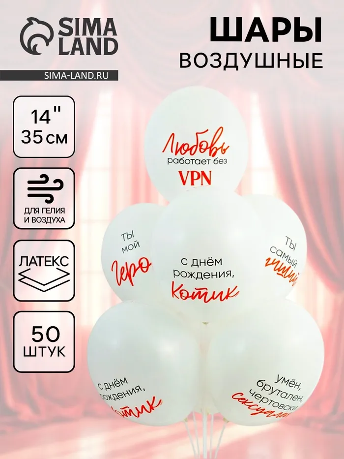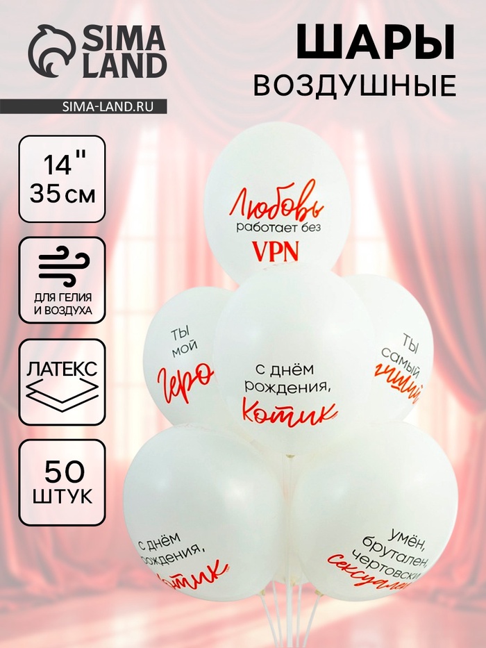 Воздушные шары латексные 14" «Ты мой герой», 50 шт. — Характеристики