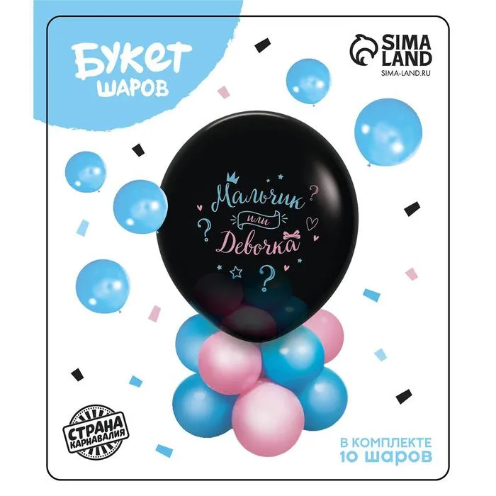 Всё чаще будущие родители устраивают для близких и друзей гендер-пати — вечеринку, где рассказывают пол ребёнка. Сделать это событие ярким и незабываемым поможет непрозрачный шар-гигант с маленькими шариками голубого или розового цвета внутри.