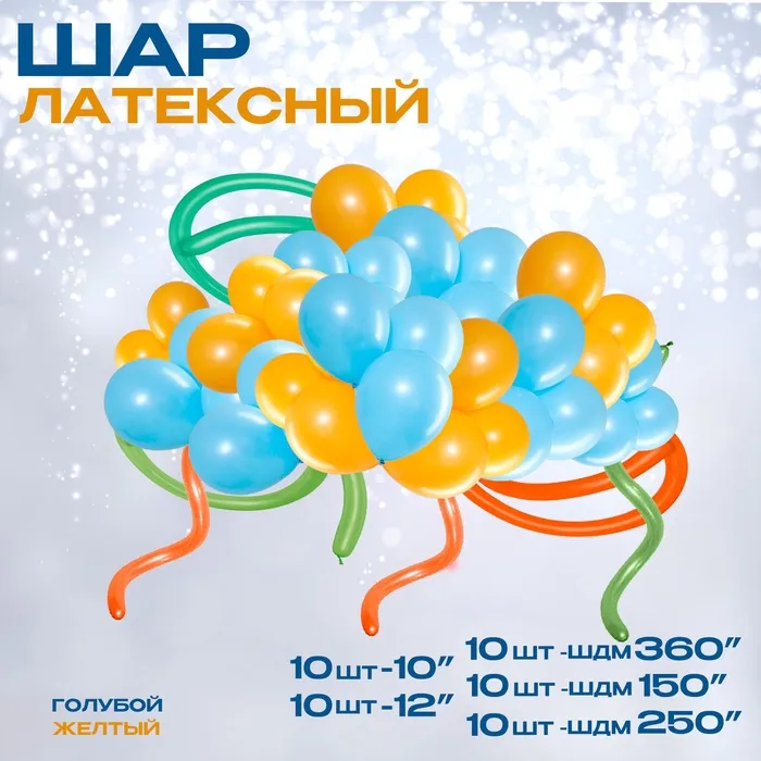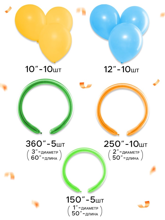 Воздушные шары латексные, набор «Голубой и оранжевый», 40 шт. — Характеристики