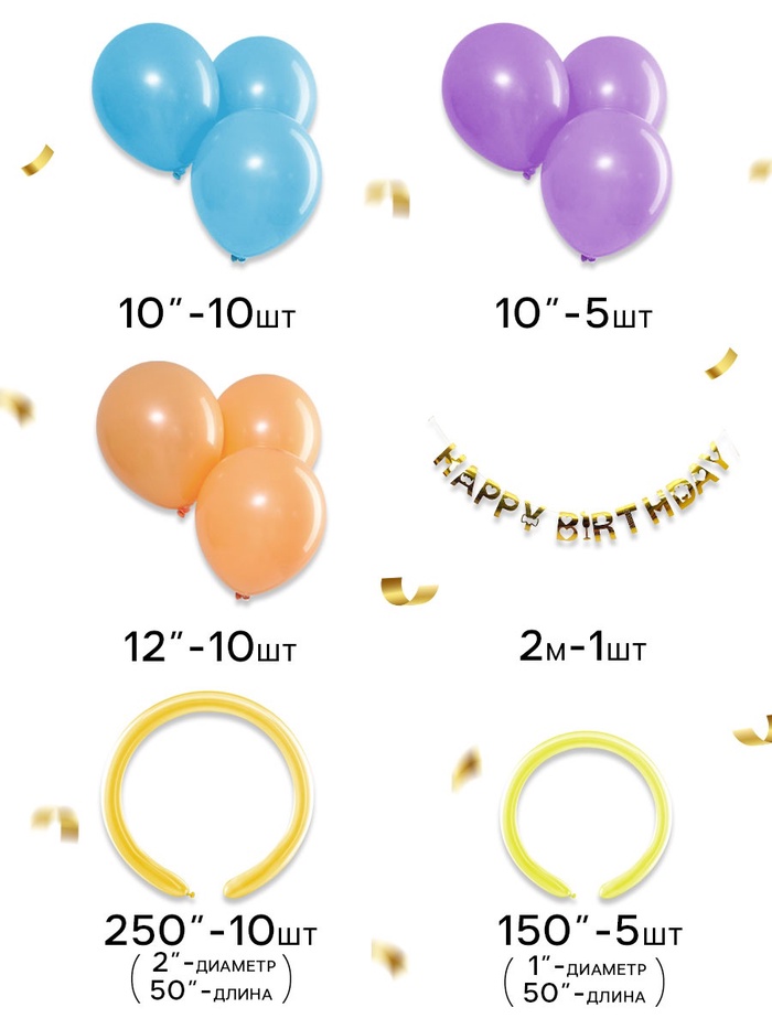 Воздушные шары латексные, набор «С днем рождения»: 40 шаров + гирлянда — Характеристики