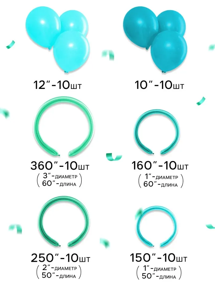 Воздушные шары латексные, набор «Тёмный бирюзовый», 60 шт. — Характеристики