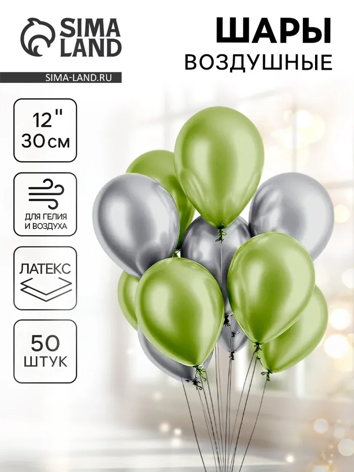 Воздушные шары латексные «Серебро и салатовый», 50 шт., хром — Характеристики