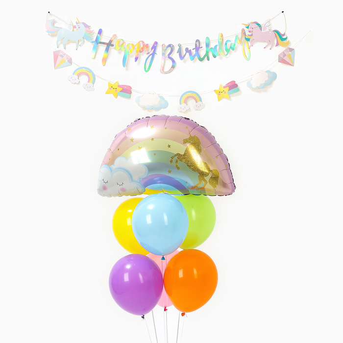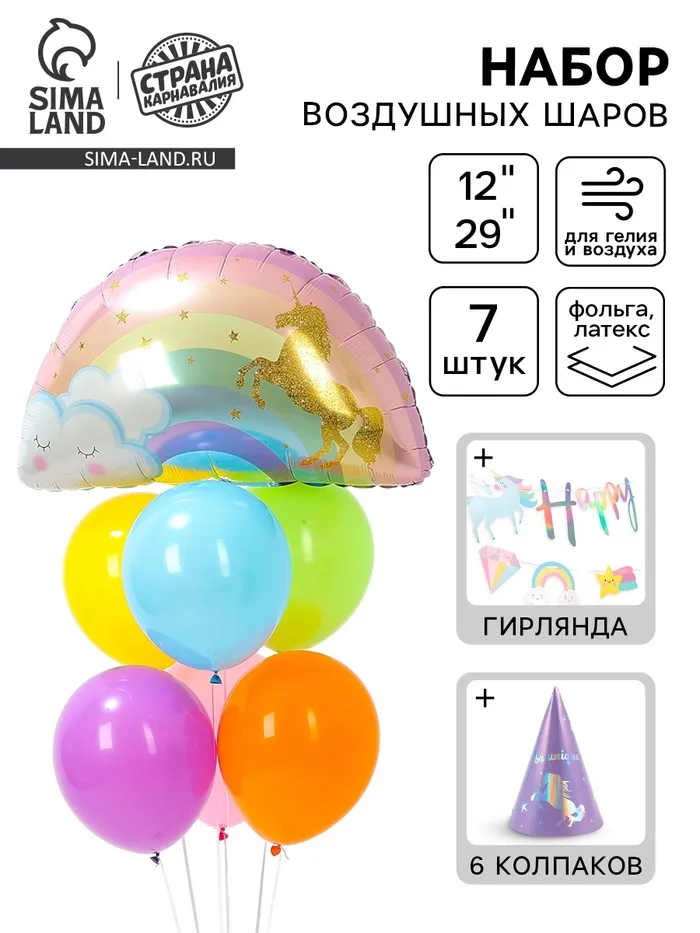 Воздушные шары, набор «Единорог»: 7 шаров, гирлянда, 6 колпаков — Характеристики