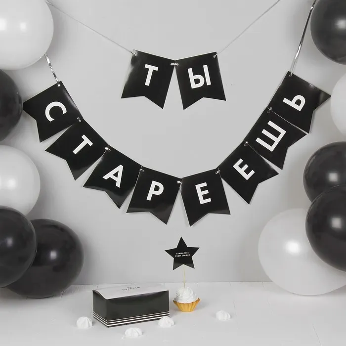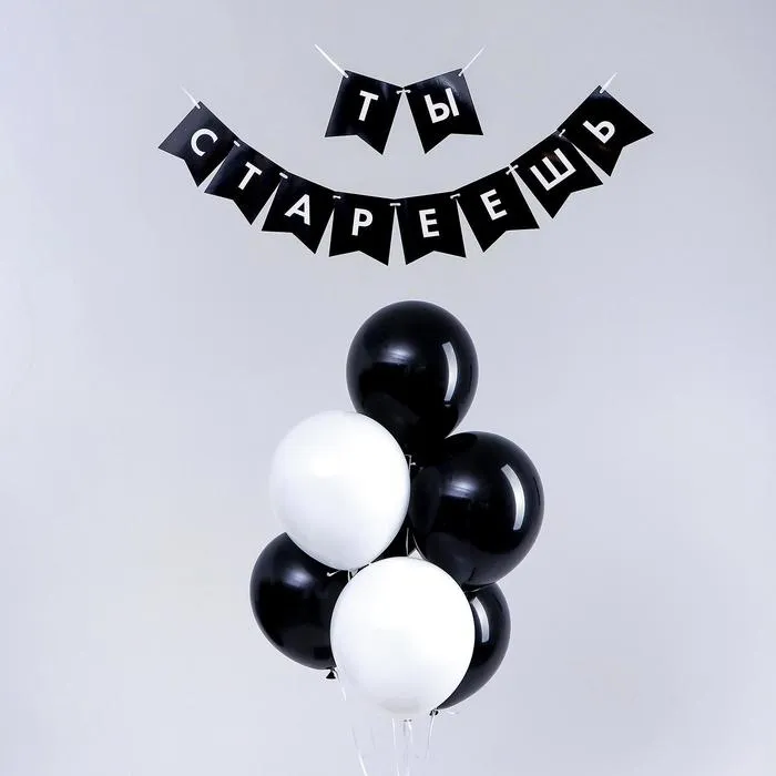 Воздушные шары, набор «Старость не радость»: гирлянда, коробка для сладостей, топпер (13 предметов) — Характеристики