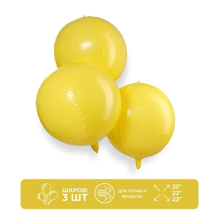 Воздушные шары полимерные 22" «Макарун», 3 шт., жёлтые — Характеристики
